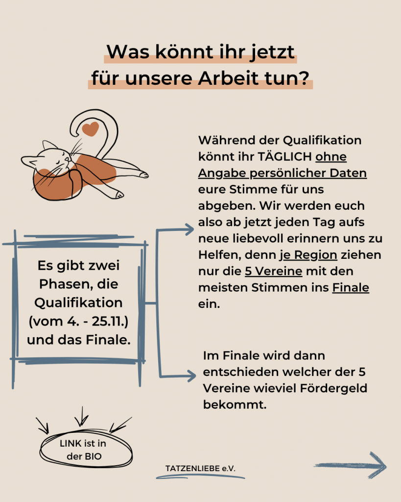 Das Beste ist: Ihr müsst kein eigenes Geld ausgeben und nicht viel tun, um uns hier zu unterstützen. In der Quali-Phase (4.11.-25.11.) brauchen wir jeden Tag eure Stimme.